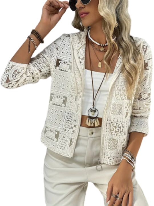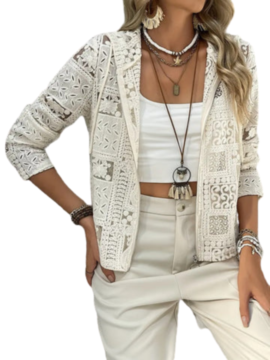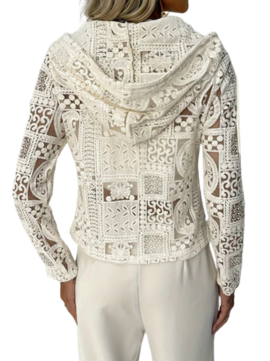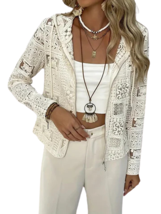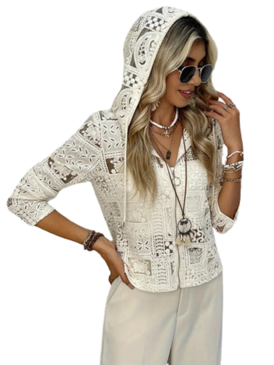 Kurtka z kapturem | Wzór koronkowy i oczkowy | Elegancka lekka kurtka na każdą porę roku