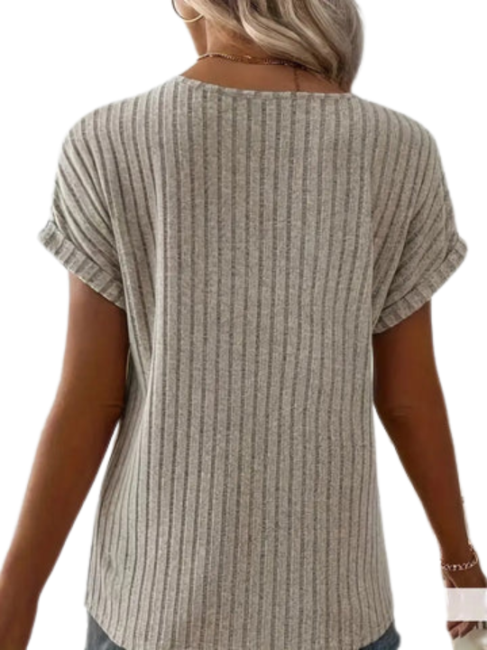 T-shirt | Dekolt w serek, Krótkie Rękawy & Wzór w Paski | Letni Styl Dzianinowy